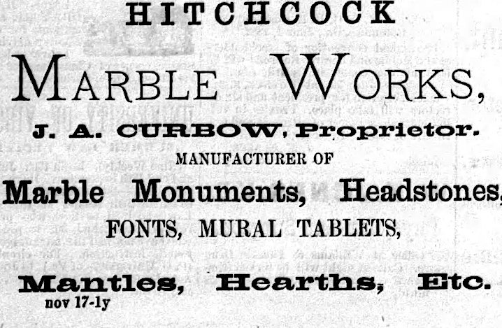 Curbow & Clapp was owned by Georgia-born Joseph A. Curbow and Avery L. Clapp. Joseph’s name may sound familiar to you. He took over H.W. Hitchcock’s marbleworks after he died in 1878.