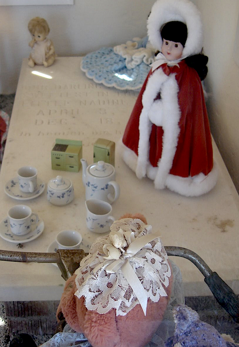 The sun was going down as I prepared to leave Nadine’s dollhouse. Cars were going by the cemetery and I could hear a dog barking as people were ending their day. Life was moving along. But standing there, I felt as if I was back in 1933 for a moment. When a little girl asked for the one thing she wanted more than ever.