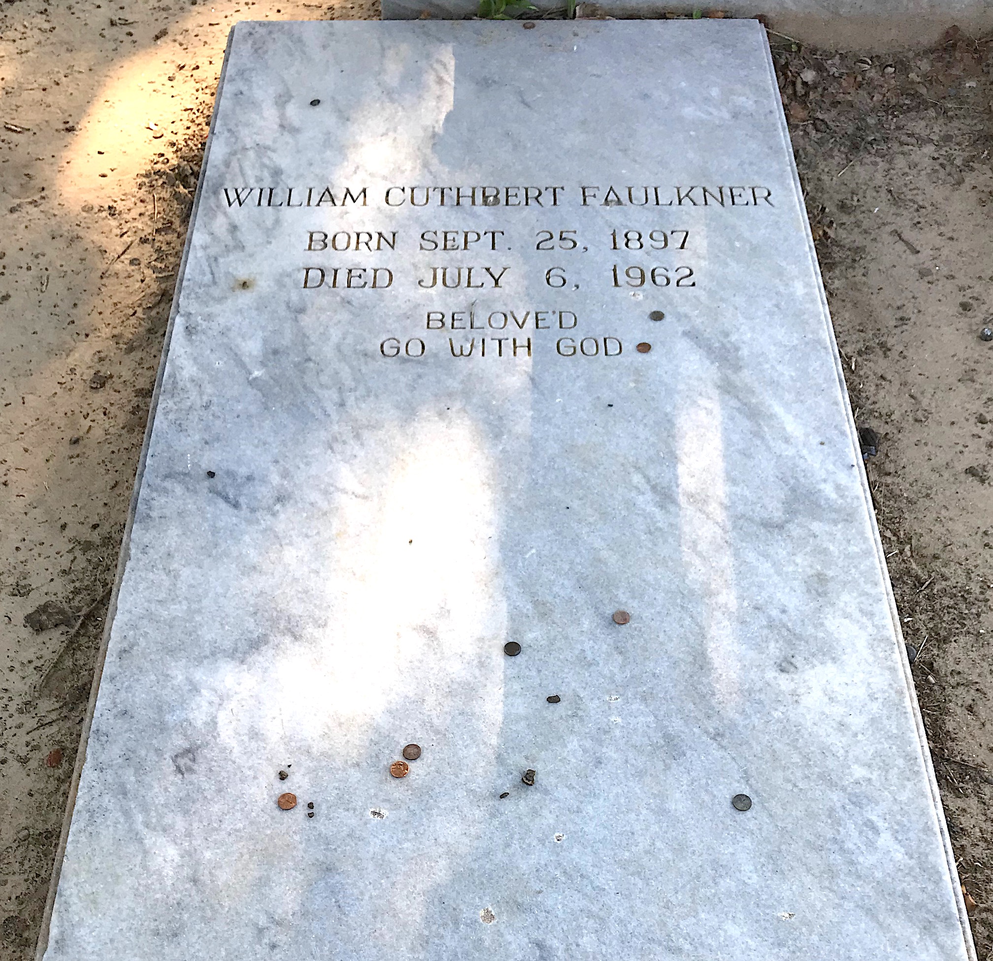 Ole Miss literature students have a tradition of gathering at Faulkner’s grave to toast the Deep South’s foremost author. But no empty whiskey bottles were littering his grave on the day we stopped by.