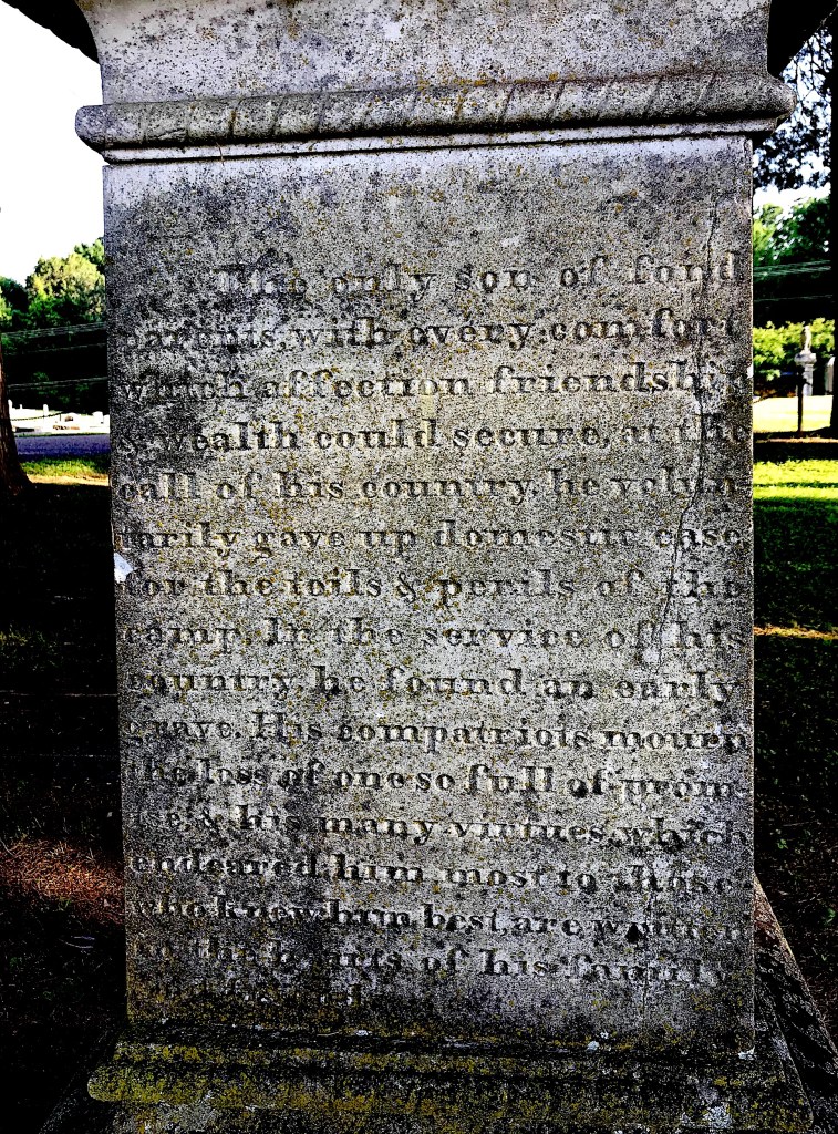 The inscription on the Longstreet family monument is not easy to read so I am thankful to the person who transcribed it for Augustus’ memorial on Find a Grave. Longstreet apparently wrote it not long before he died: