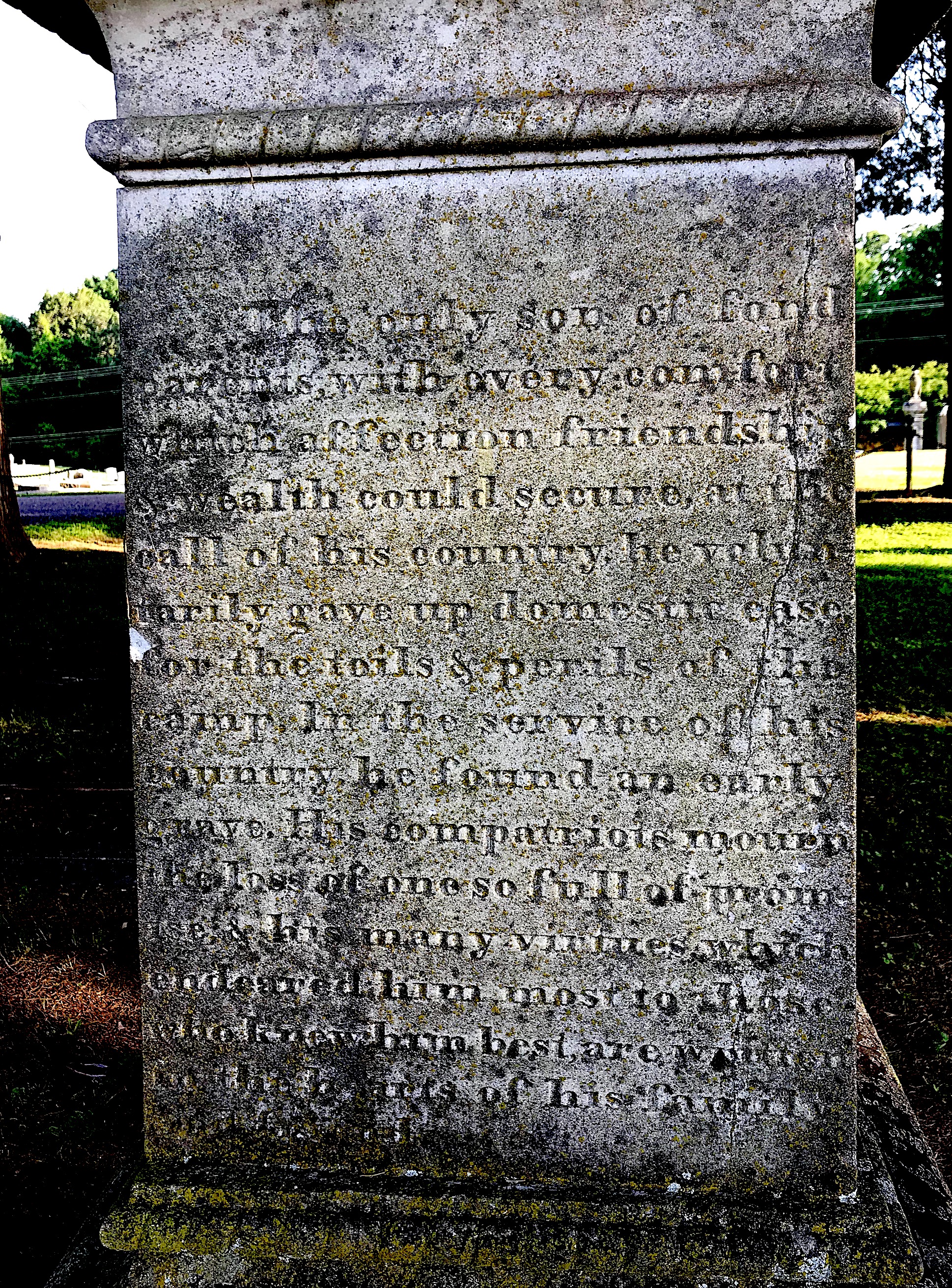 There’s a heartfelt inscription on the back of his monument, which is a broken column. This indicates a life cut short.