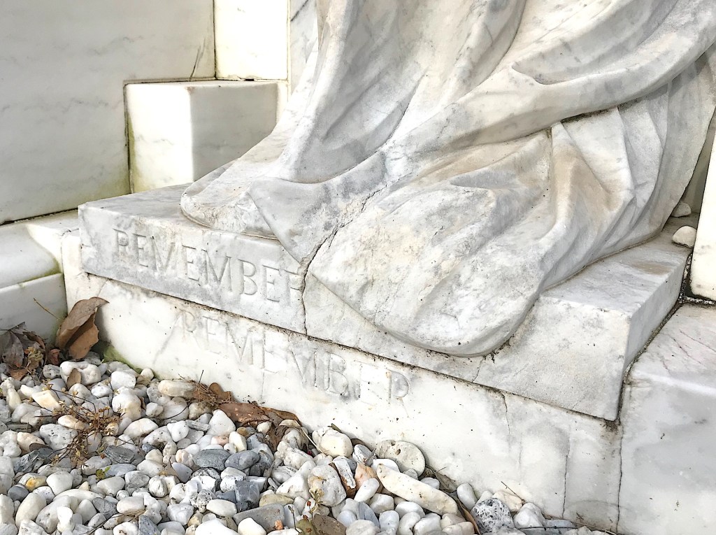 It was time to head on for Shreverport, La. next. But as I got into Sarah’s car, I thought of one of the last pictures I took of the larger angel. Inscribed twice below the folds of the gown were the words “Remember, Remember”.