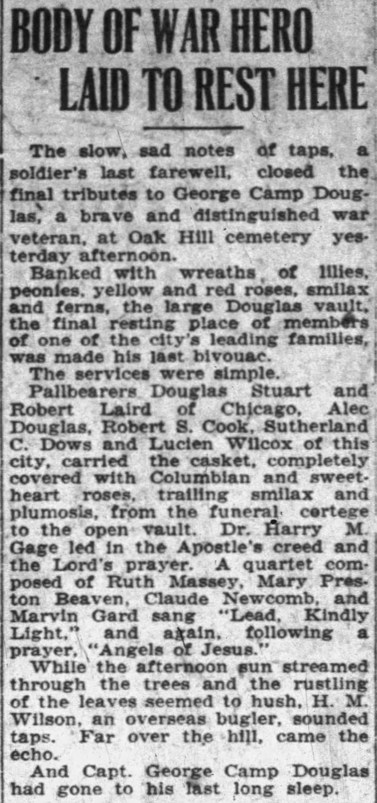 He was buried at OHC with a large white bronze monument.