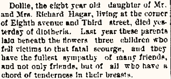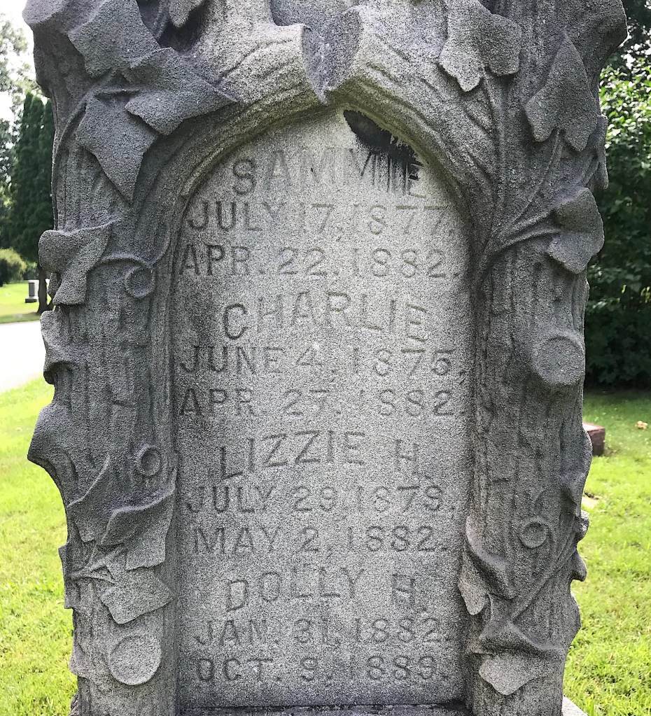 Jimmie died on Jan. 4, 1890 and Bessie died on Jan. 12. 1890, both from “diphtheritic croup” or rather, diphtheria.