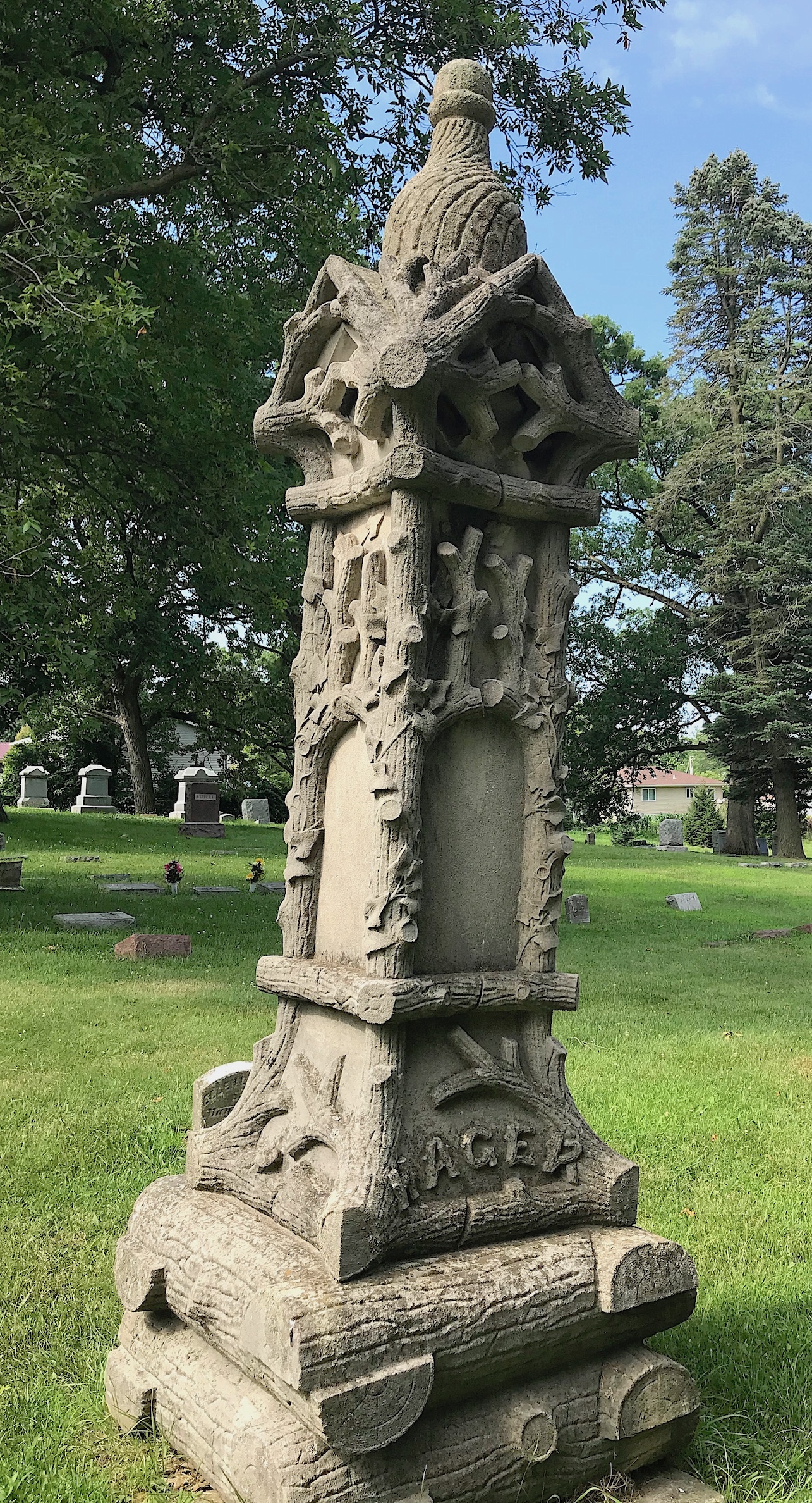 One of the reasons I always looked forward to our trips to Iowa was that I knew we’d encounter at least a few white bronze monuments/markers. Since the Western White Bronze Company had a factory in Des Moines, there are tons of their markers scattered throughout the state. I don’t see them that often here in the South.
