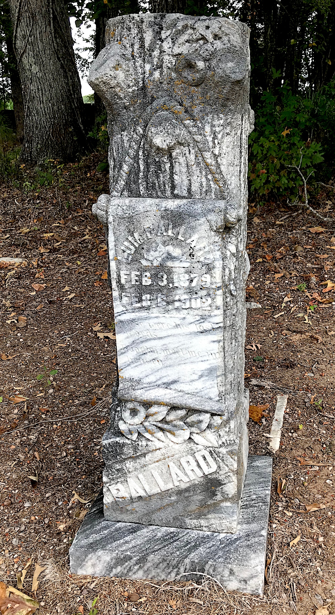 I noticed there was a tree-shaped marker for a Lum Ballard and wondered if he was connected to Lum Columbus. He is. Lum’s step-daughter (and niece) Ada Elvira (born in 1855), named her son after him.