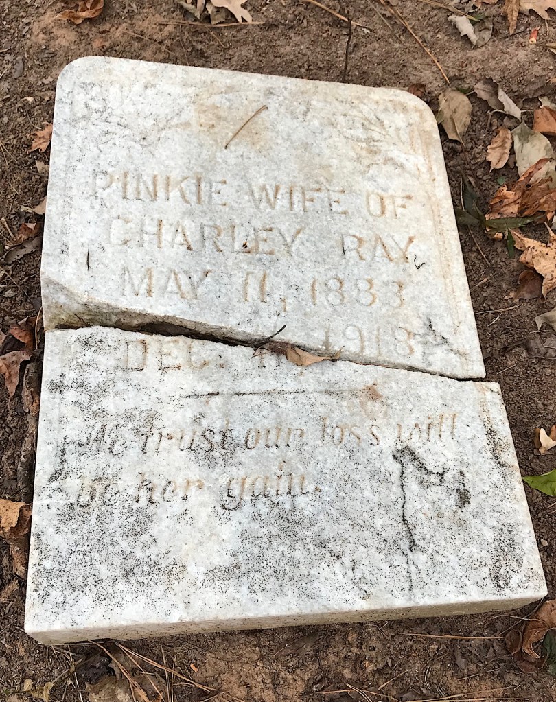 I had better luck with Pinkie Ray, the wife of Charles Ray, whom she married at 15. According to the 1910 Census, the couple had seven children. Pinkie died at at age of 32 in December 1918. Her cause of death may have been Spanish Flu.