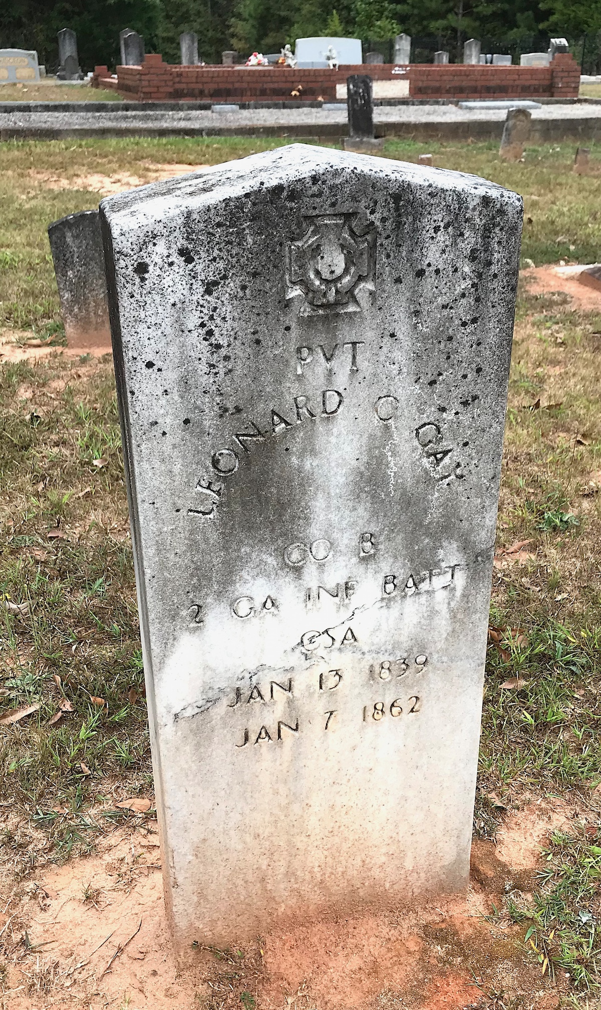 During the Civil War, William served in the Seventh Georgia Infantry, Co. K. His stone says he was a sergeant but records indicate he was a private. He died on Jan. 7, 1862 in a hospital in Richmond, Va. He is buried in Oakwood Cemetery in Richmond. He was 25 when he died.