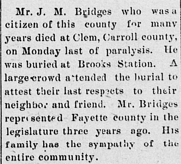 Benjamin was wounded at Griswoldville (an estimated 500 or so were wounded and 600 captured, with 51 dead). According to his wife’s obituary, he died in a military hospital in Macon but it also lists that he was a captain. So that may not be true. His body was brought back for burial in the CLCC Cemetery. Mary, his wife, gave birth to son Benjamin Jr. a few weeks later on Jan. 9, 1865.