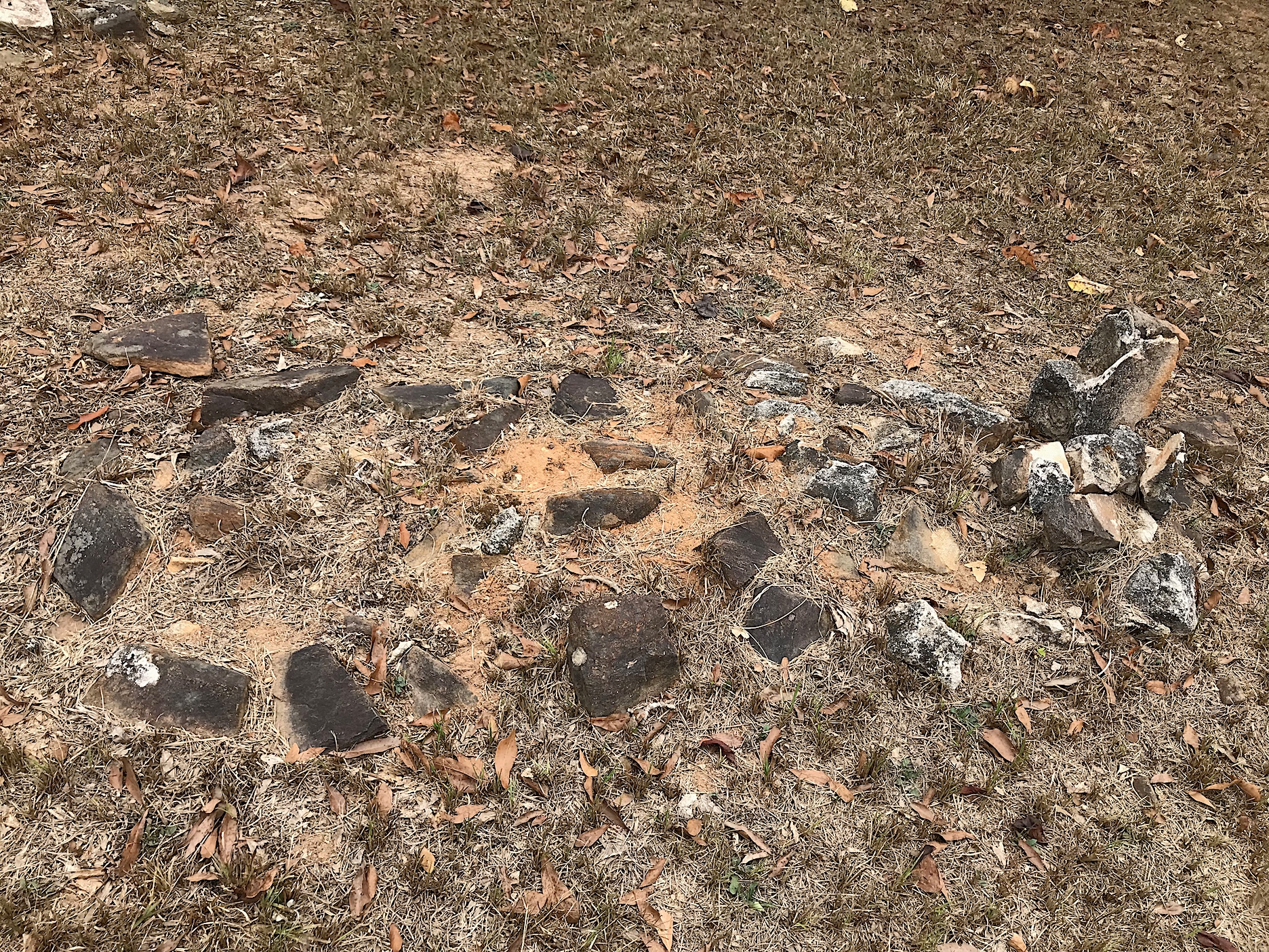 Then there’s this type of grave, which is fairly common, a circle of stones grouped together. This could be a child’s grave due to the size, but I don’t know for sure. This is not a Southern phenomenon, either. I’ve seen them in Ohio and Oklahoma as well. Again, people were using what they had. Purchasing a marker may have been beyond their means at the time.