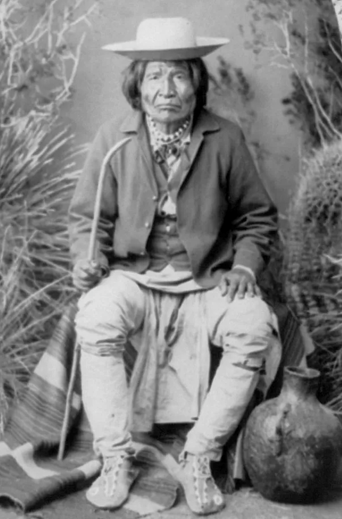 In 1882, when a party of Apaches including Geronimo forced Loco to leave for Mexico, Loco instead waged guerilla warfare against the Chiricahuas. In 1886, Loco went to Washington, D.C. to negotiate. However, like Geronimo, he was made a prisoner of war and sent to Florida. He was later transferred to Fort Sill with his wives. Here Loco was made head of Loco’s Village. His son, John Loco, was enlisted as a scout, and they raised crops. Loco was the last living chief of the Warm Springs Apaches. He died in 1905 at age 82.