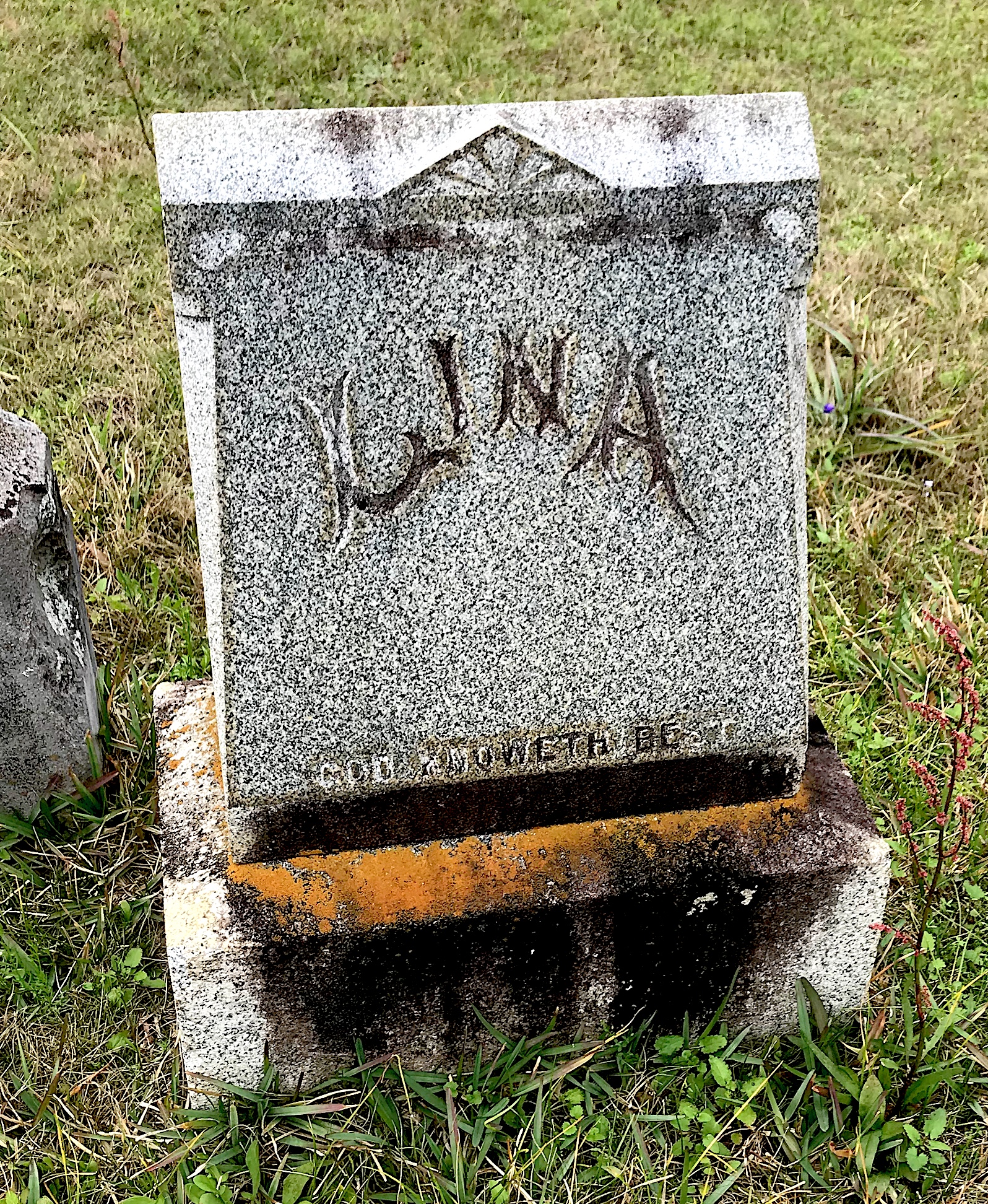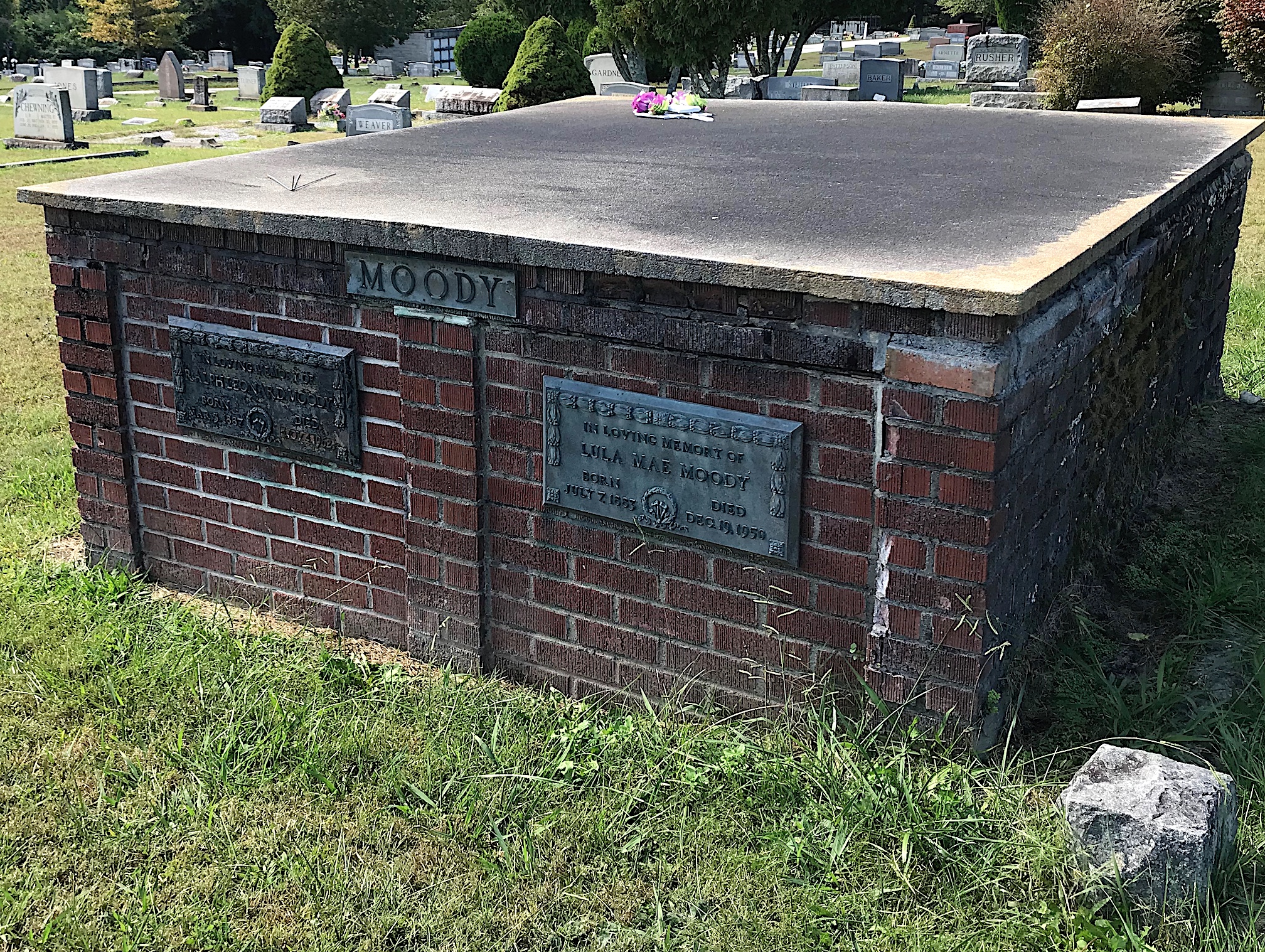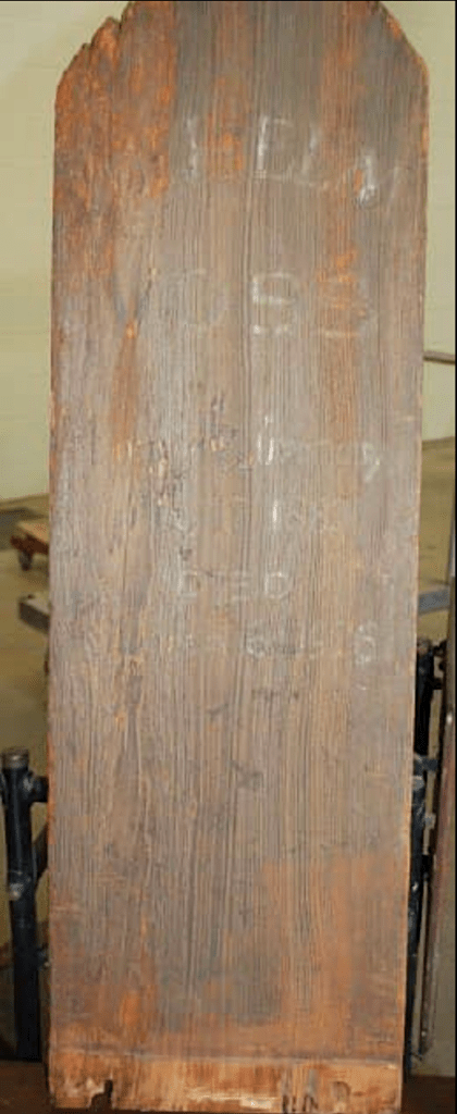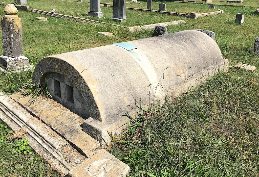 The original grave marker for Mary C. “Mollie” McCoy was stolen at some point after her death on February 4 1920. It remained unmarked until 2012 when her grave was discovered in a new survey of the cemetery and a new one was placed there.