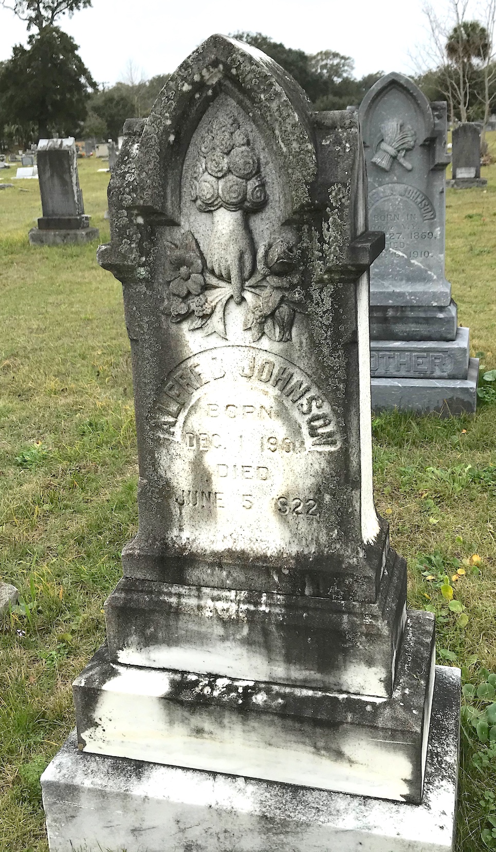 Initially, I thought that Capt. Allen’s body was lost at sea and his marker was a cenotaph. But an Aug. 9, 1898 article in the Pensacola News leads me to believe that’s not the case. It states that Capt. Lyons of the tugboat Nellie went to St. Joseph to bring back the bodies of Capt. Allen and Henry Brown (the cook), in addition to searching for the bodies of the two other victims.
